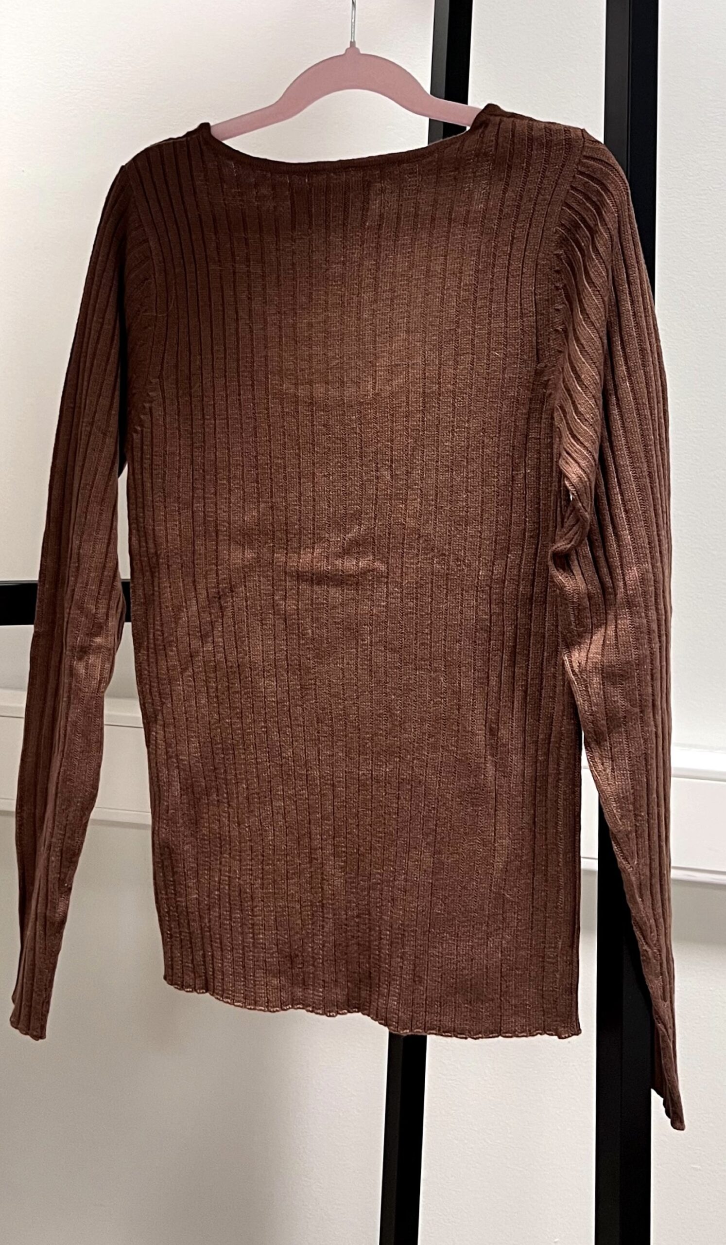 Trendikas ja figuuri järgiv soonikkoes pikkade varrukatega pluus. Ees minimalistlik nööpdetail, mis lisab lihtsale lõikele stiilse aktsendi. Pehme ja veniv materjal tagab mugava istuvuse ning sobib ideaalselt nii teksade, seeliku kui ka pintsaku alla.