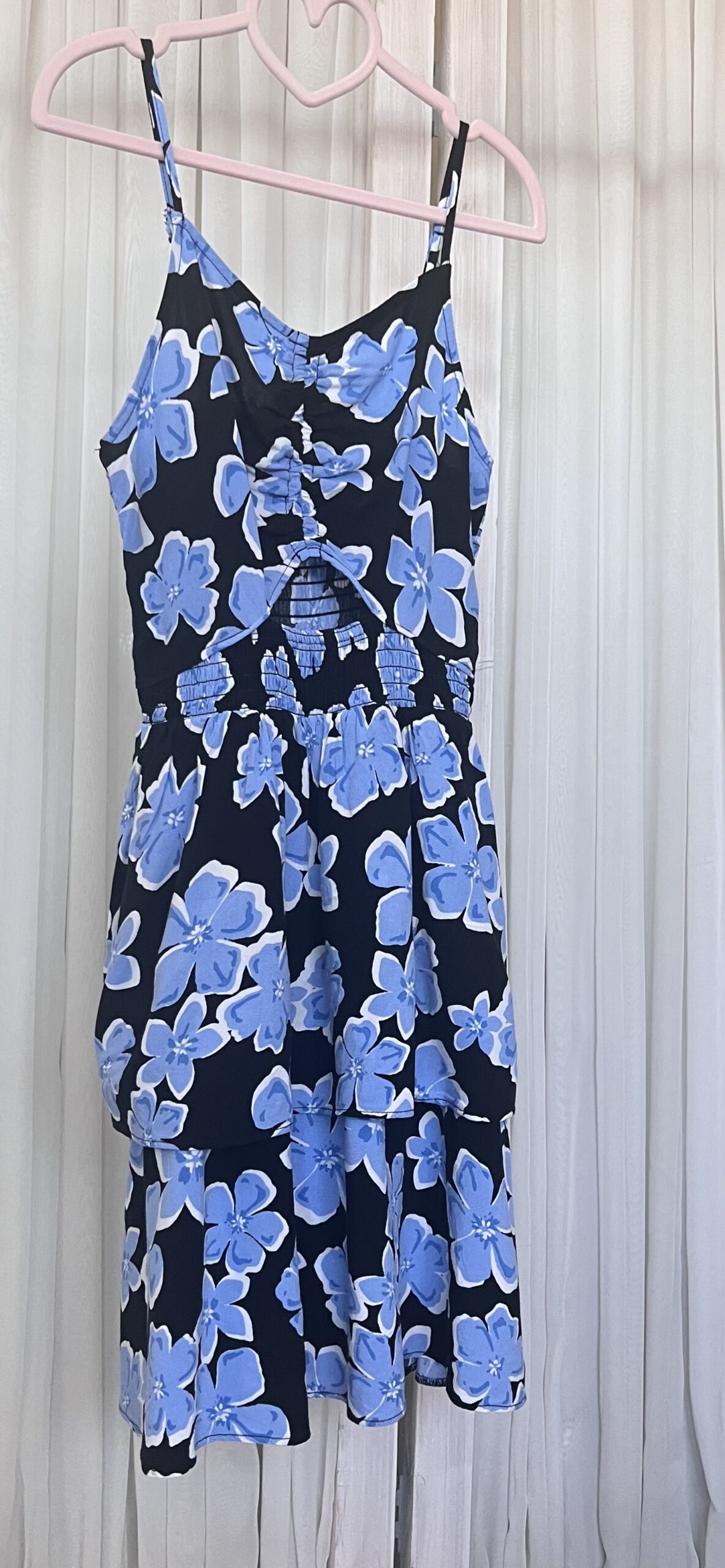 Sinistes toonides lillemuster ja kerge lendlev lõige teevad sellest ideaalse valiku soojadeks ilmadeks.