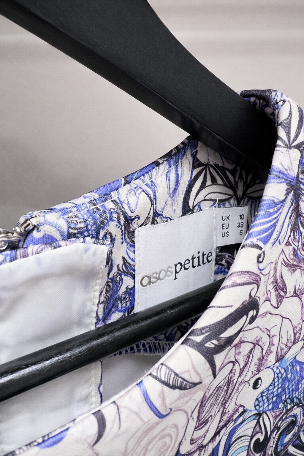 Elegantne ja kehasse hoidev ASOS Petite kleit efektse sinakas-valge mustriga. Petite-lõige on disainitud lühemale kasvule, pakkudes paremat istuvust ja ilusat proportsiooni. Tagant täispikk lukk muudab selgapaneku mugavaks.