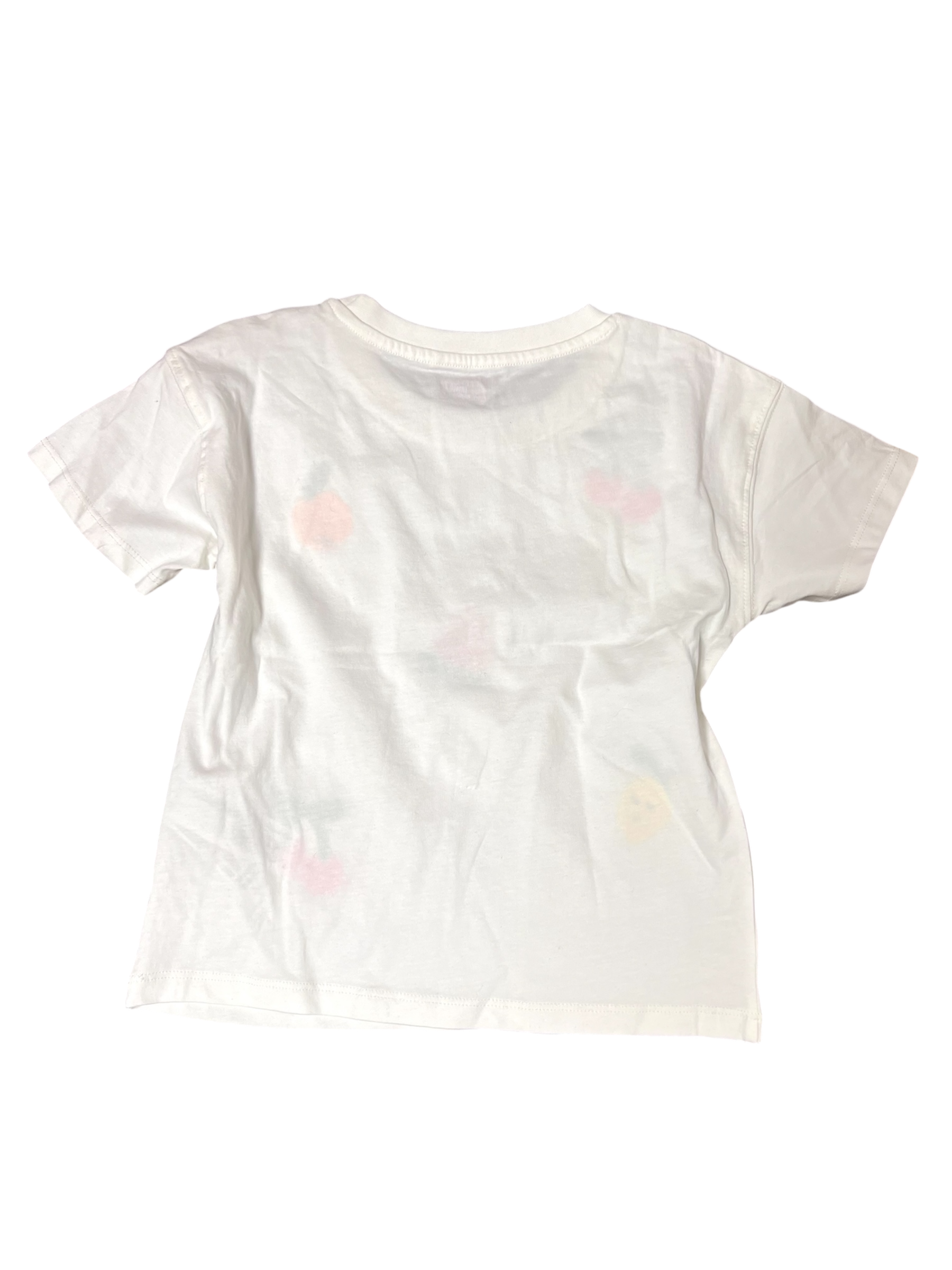 Armas ja suvine laste T-särk mänguliste puuvilja aplikatsioonidega (kirssid, arbuus, apelsin, sidrun).